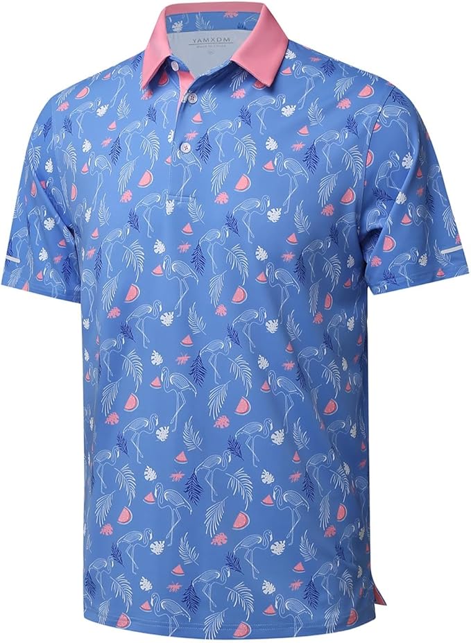 Golf Shirts for Men - Moisture Wicking Short Sleeve Performance Sport Casual Striped Collared Mens Polo Shirt