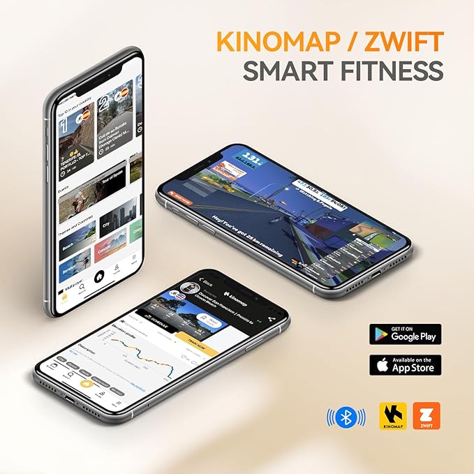 • 【Supported with Smart APP】Equipped with built-in Bluetooth, supports Smart APPs like KINOMAP, suitable for a holistic fitness experience, so you can experience different riding scenarios, as well as the fun of cycling races.