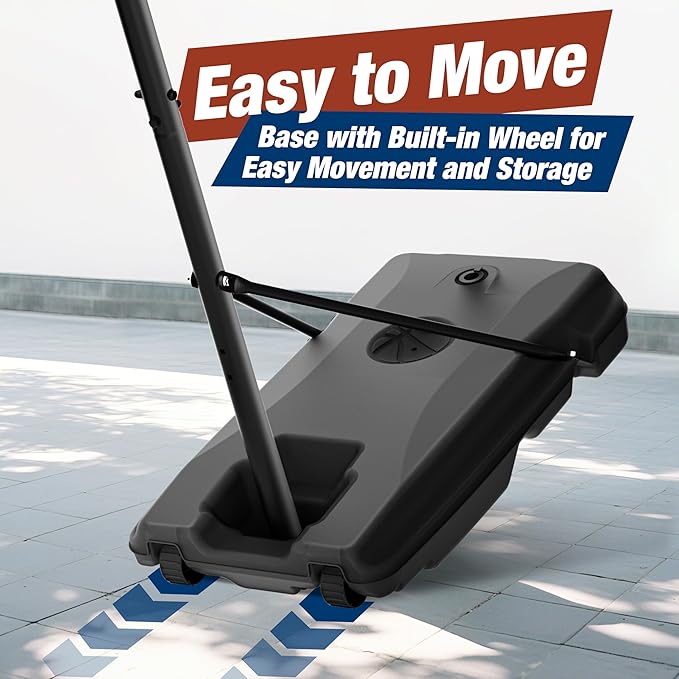 • Sturdy Base for Safety: The outdoor basketball hoop features a robust base that can be filled with 9.5 gallons of water and 101 lbs of sand, this portable outdoor basketball goal stays firmly grounded during aggressive dunks and fast-paced games—no wobbling or tipping