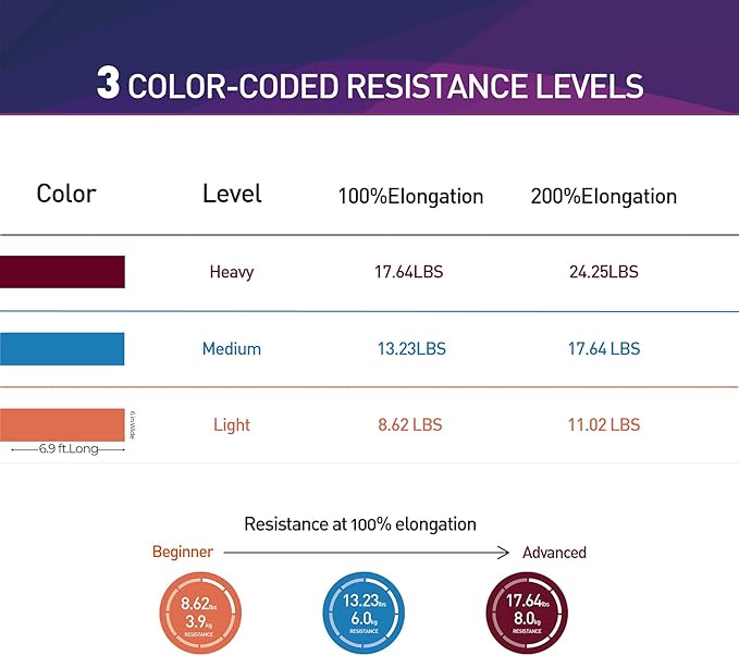 • 【Fun & Easy To Use】 The Bands are Perfect for Resistance Training and Rehabilitation, Which Provides Both Positive and Negative Force. You Can Take a Couple Wraps Around Your Hands for More Tension and a Secure Grip. or Just Tie a Knot, For Use as a Loop Band, and also You Can Double Them Up for Even More Resistance. The Bands are Vibrantly Color-Coded, Once You are Ready for a More Challenging workout, You can Move Up to The Next Color.