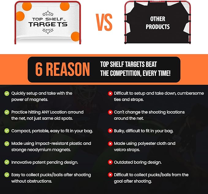 • Easy Magnetic Target Attachment; Our top-notch lacrosse training target has high-powered magnets for easy attachment to lacrosse nets, street hockey nets, ice hockey nets, or sturdy metal frames, so you can improve your skills on any setup