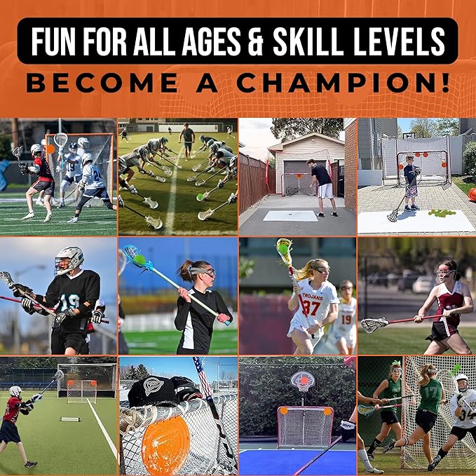 • Express Your Scoring Potential; Unleash your inner goal-scorer with our official lacrosse balls and lacrosse/hockey goal targets, providing the perfect setup for shooting practice in driveways, parking lots, streets, basements and tennis courts as you improve your shots, break scoring records, and wow the fans