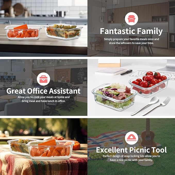 • [Oven, Microwave, Freezer Safe] Durable borosilicate glass containers designed to go from freezer to oven, containers are great for meal prep, leftovers, cabinet storage, and more, make meal prep simple and easy.