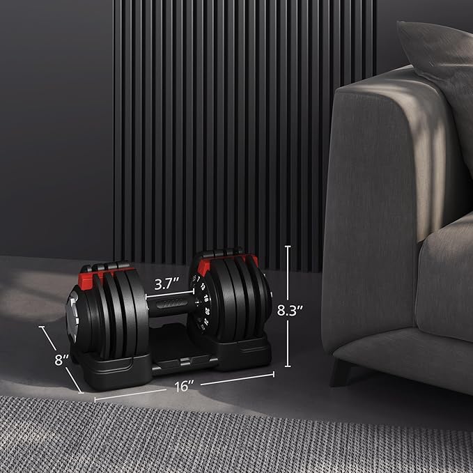 • 12-IN-1 ADJUSTABLE DUMBBELLS:This dumbbell set spans a wide weight range from 7 lb to 52.5 lb in diverse and smaller increments to facilitate gradual resistance, intensity, or volume adjustments.