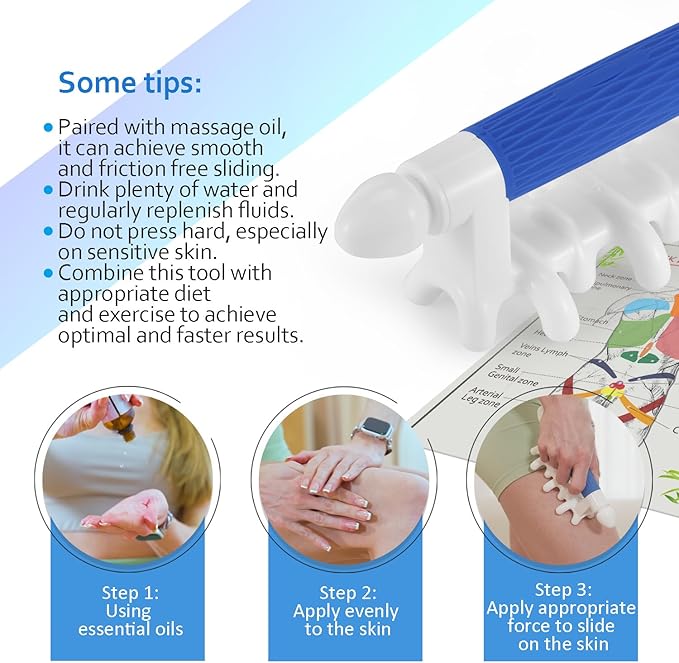 Fascia Massage Tool Myofascial Release Blaster Tools for Anti-Cellulite Skin Soothing Lymphatic Drainage Trigger Point Deep Tissue Neck,Shoulder,Lower Back,Psoas,Thighs,Butt & Full Body (Blue)