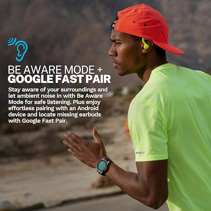 • Be Aware Mode + Google Fast Pair: Stay aware of your surroundings and let ambient noise in with Be Aware Mode for safe listening. Plus enjoy effortless pairing with an Android device and locate missing earbuds with Google Fast Pair