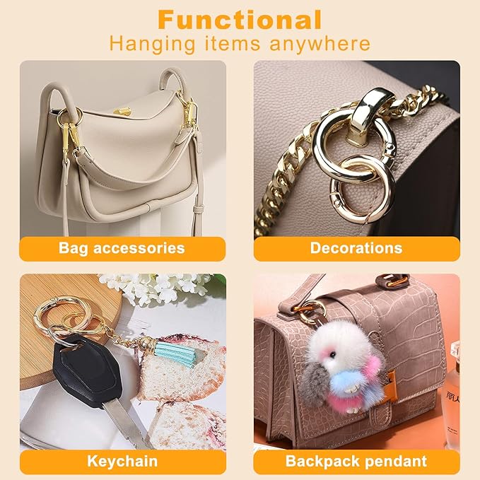 • Spring Opening Design: Spring o-ring with open design, easy to use, just open the spring-loaded gate and clip it to items quickly. The clips stay shut on their own for convenient one-handed use. Round carabiner clip can be used to hang keychains, wallet hardware, umbrella cord lanyards