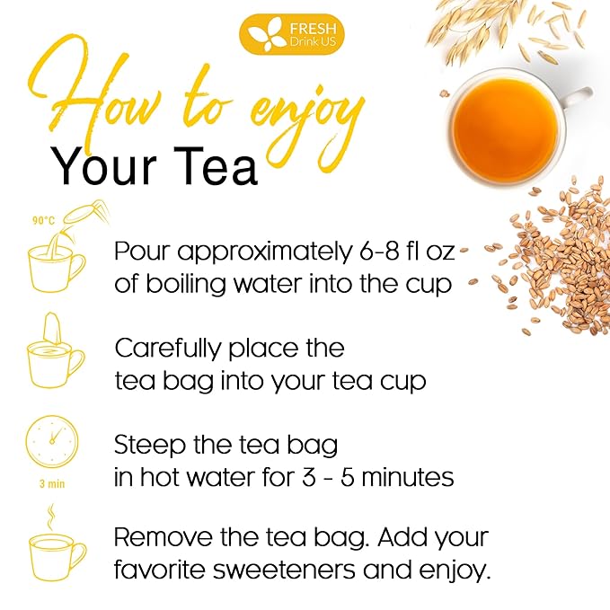 • ☘️ STEP TO ENJOY BARLEY LEAVES TEA BAG: Place 1 Barley tea bag into your favorite cup or mug. Add approximately 8 fl oz of hot water, and leave to steep for about 3-5 minutes. Savor it hot for a comforting and calming experience.