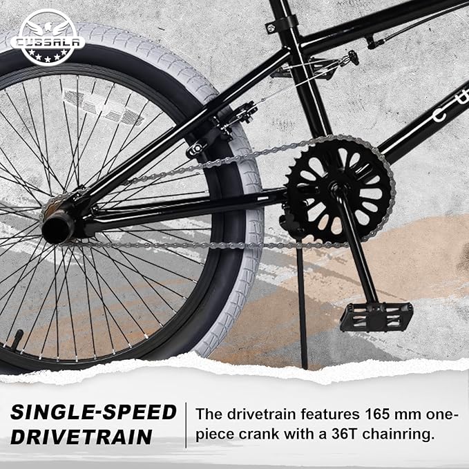 • Easy-to-Ride Design - This BMX bike features a drivetrain with a 165mm one-piece crank and a 36T chainring, and front and rear aluminum brakes for precise speed control. Its hand-brake levers enhance safety and make riding easier.