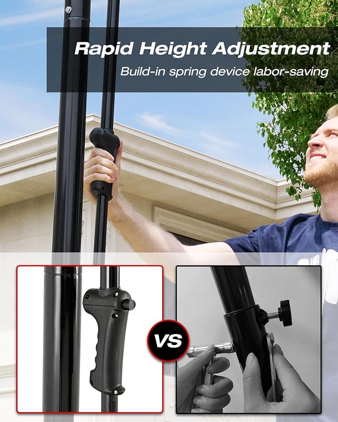 • Quick Height Adjustment for All Ages: Effortlessly adjust the basketball hoop's height from 4.8 to 10 feet with a simple mechanism, making it suitable for kids, teens, and adults. Whether for beginners or seasoned players, this adjustable basketball hoop grows with your skills