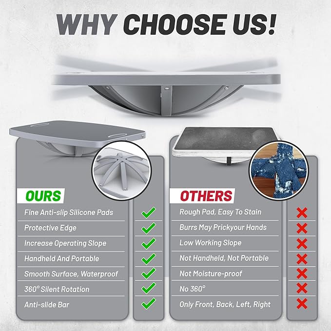 • 【Professional & Compact Design】Balanced board size: 17.5*13.4*3.5in, specially carrying a portable design for you, with elliptical holes at both ends that are convenient to grasp the hand. there is an oval hole in the middle of the bottom and the reliable body is convenient. a non -slip static silicone strip can be tilted at 25 degrees with a large arc, and the support is as high as 500 pounds.