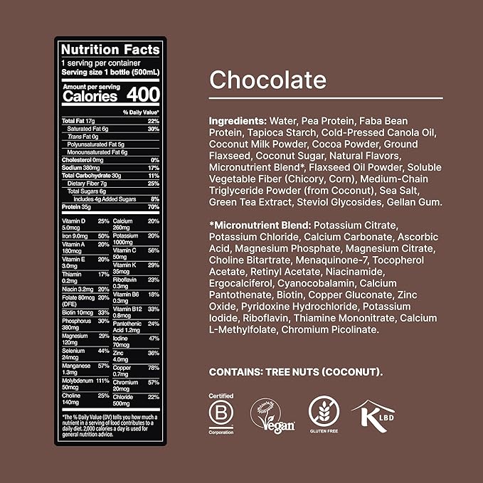 • MORE THAN A PROTEIN DRINK: Not only does each bottle contain 35g of protein, they're packed with loads of good stuff to help your body thrive - from vitamins and minerals, to fiber, phytonutrients and more.