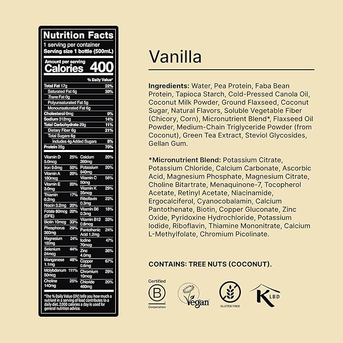 • EATING HEALTHY NEVER TASTED SO GOOD: Ready-to-drink is available in two delicious flavors, Vanilla and Chocolate. Each one containing real wholefood-sourced ingredients and zero artificial sweeteners.