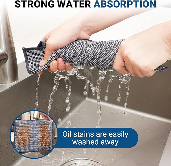 • Multiple Uses:The fine hole design of our dishcloth dishcloths makes them very useful. You can wet them, remove dirt on the silver side, and then remove the dirt while the rag surface absorbs moisture and cleans better, and effectively cleans the meal can be used to clean the dirt from dishes, sinks, counters, stoves, barbecue grills, and can also be used to clean curtains, vents, handrails, headboards, window grooves, faucets and footboards, etc.