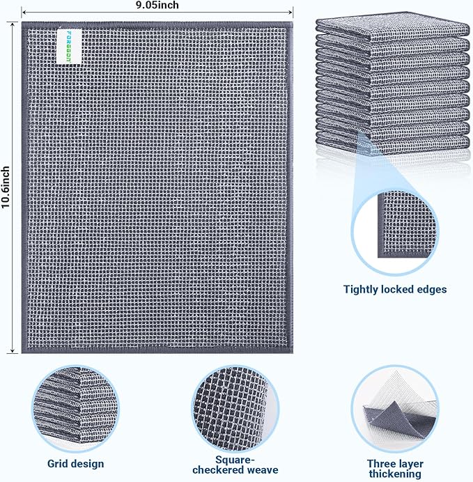 • Eco-friendly and long-lasting: You'll receive 10 packs of finely crafted Three-laye wire cleaning cloths, each dishrag measuring 9.84 inches by 9.84 inches , can withstand multiple wash cycles, maintain performance, and can be reused