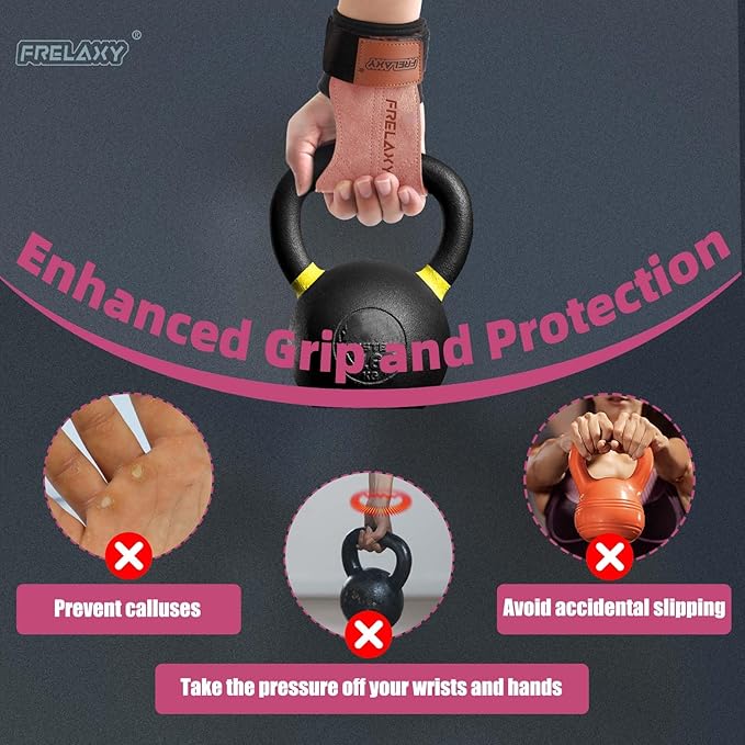 Frelaxy Lifting Wrist Straps Women and Men, Weight Lifting Grips with Cushion Wrist Loop, Double Layer Leather and Storage Pouch, Gym Workout Straps for Deadlift and Powerlifting