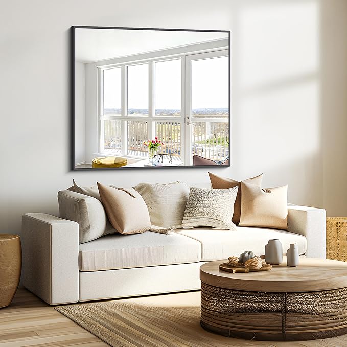 Bathroom Mirror,36x40 inch Wall Mirror for Bathroom Wall Mounted Black Rectangle Square Corner Mirrors, Black Bathroom Mirror for Living Room, Farmhouse, Bedroom Entryway, Horizontal/Vertical