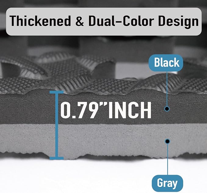 • High-Density Thickened Design: Upgraded to a thickness of 0.79 inches, this mat features high-quality, reliable materials with high-density EVA foam. It offers comfortable and durable support, providing superior cushioning and shock absorption while reducing noise.