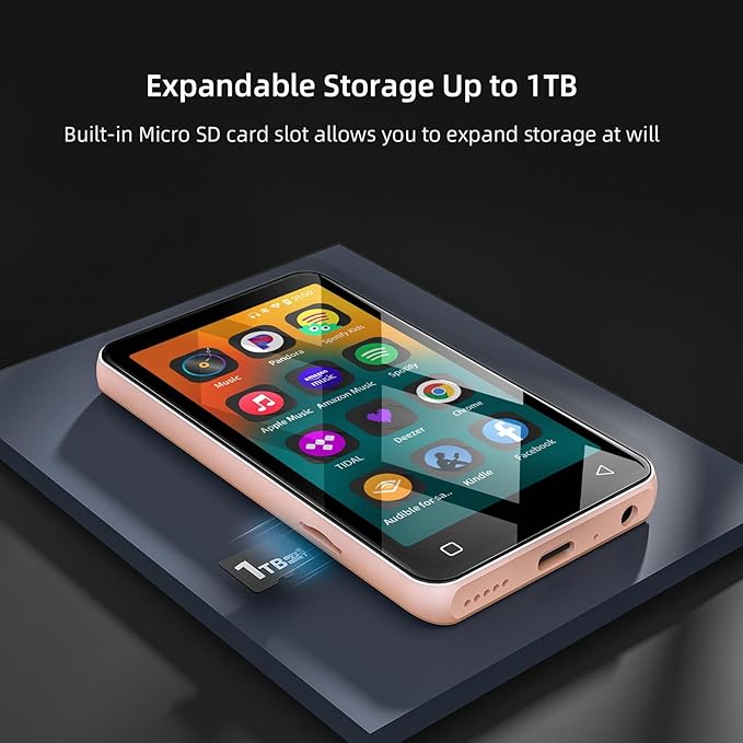 • Large Memory Android MP3: The Bluetooth mp3 player adopts the Android OS and 8 core CPU 1.9GHz processor to make it run faster and more smoothly. Meanwhile, the player built in 2GB RAM and 80GB storage(16GB ROM+ 64GB TF card), supports to expand external storage up to 1TB and is compatible with SDXC, SDHC. You can load a lot of music, videos and pictures without using up your phone's memory