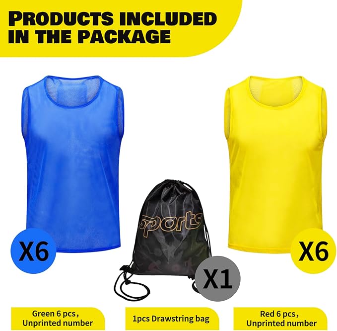 • 【Package and Services】--- Each of package comes with a beautiful drawstring bag for easy storage and carrying with you sports pinnies and Provide high-quality services.