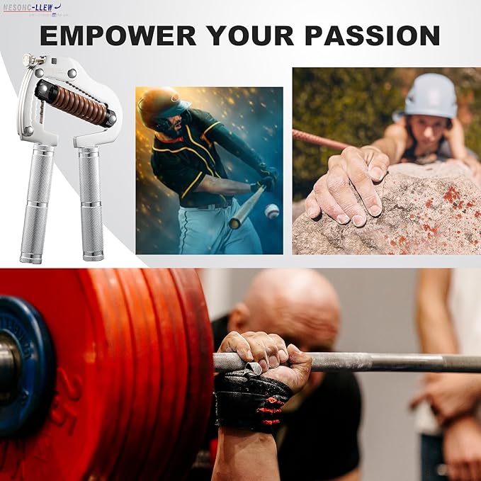 • 【Adjustable Grip Strength Trainer】: The NESOHC-LLEW brand offers a grip strength trainer with adjustable resistance, ranging from 55 lbs to 264 lbs, catering to varying fitness levels.
