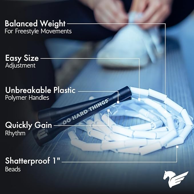 Elite Jumps - Do Hard Things 1” Beaded Jump Ropes - Strong & Durable Materials - Resize & Adjust - Fitness & Cardio Training - Improve Rhythm, Speed, Agility