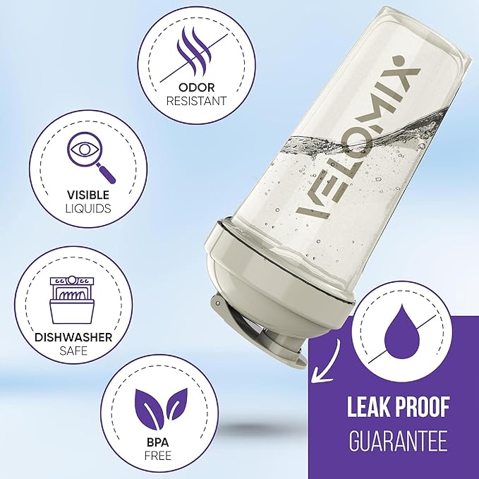 • CLEAN IN A JIFFY - Velomix bottle shaker protein design is for the on-the-move individual. A swift rinse and you're set for another round! More time savoring, less time scrubbing.