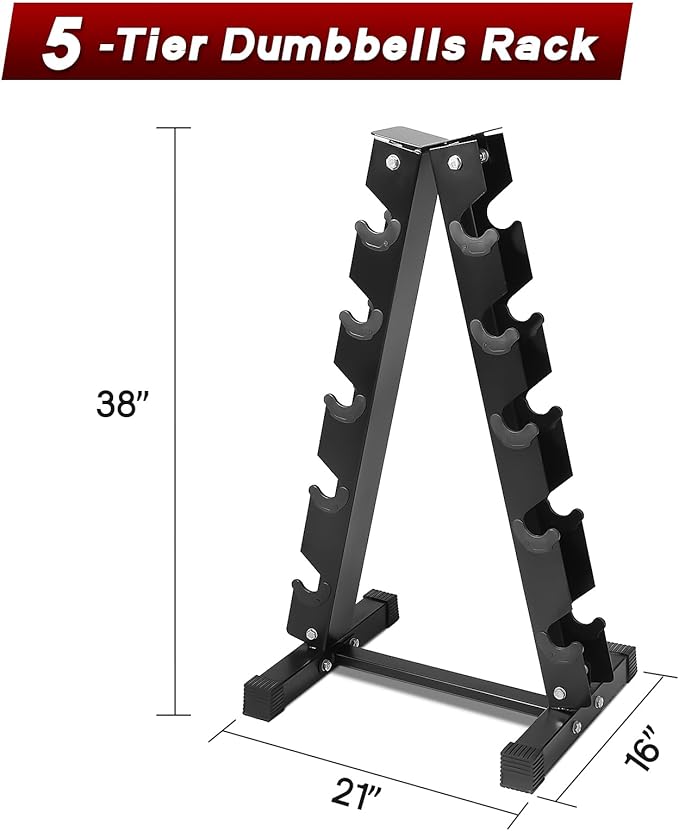 • 【Package Included】:Contains 2X5LB、2X10LB、2X15LB、2X25LB、2X35LB dumbbells with 1 X 5 Tier Rack. A sturdy set of dumbbells can be used for various barbell exercises, and you can choose different combos to vary the intensity of your workouts.