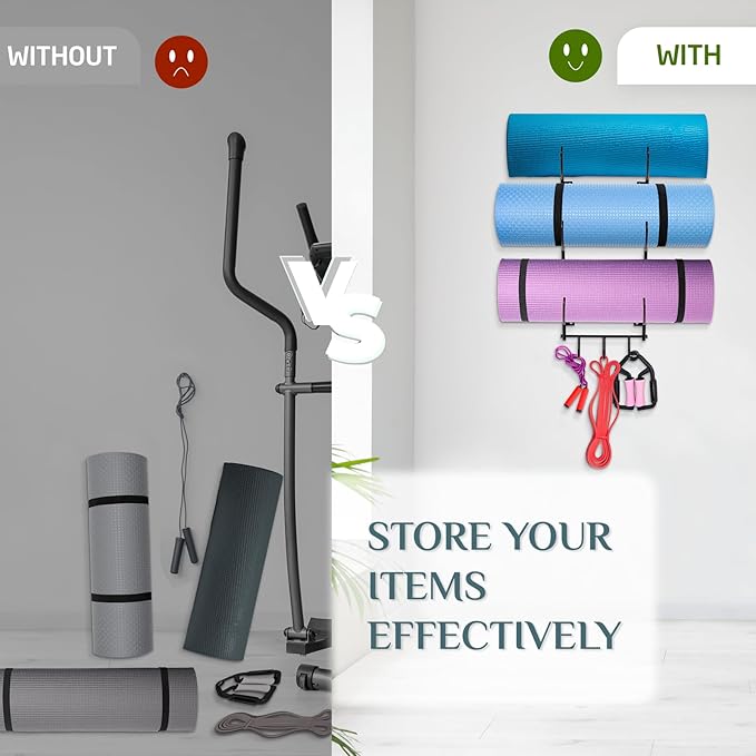 • [Home Gym Organizer] Yes4All's Roller holder offers you an efficient way to store your exercise and yoga mat, foam rollers, workout bands and more at your fingertips.