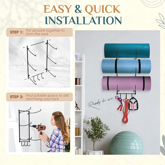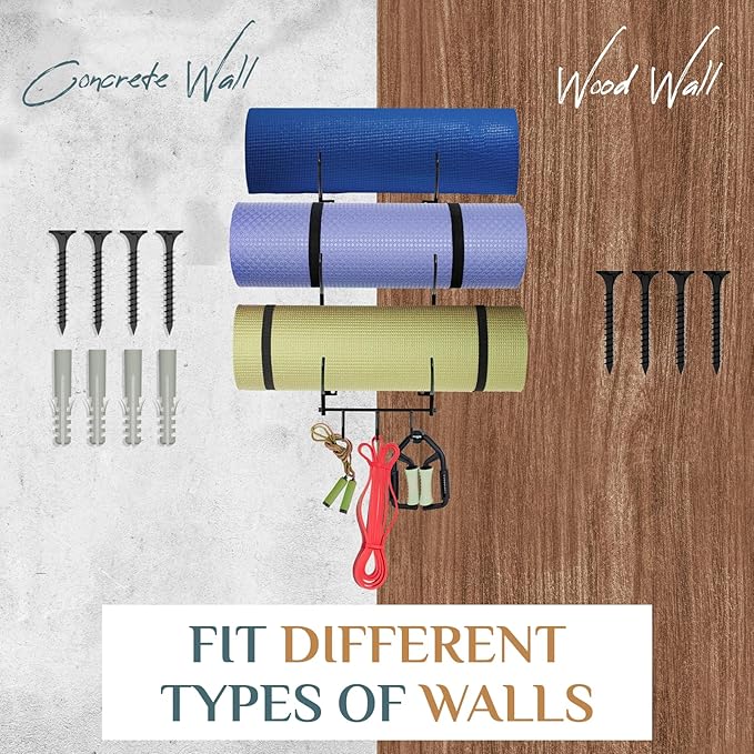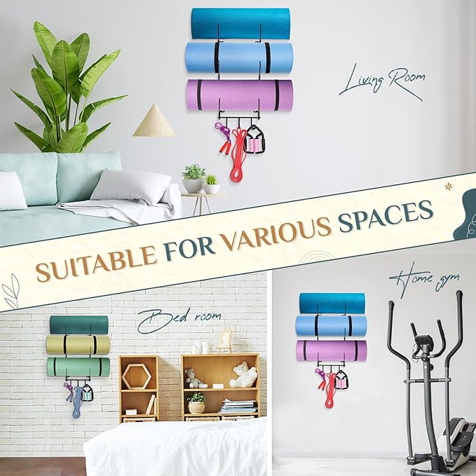 • [Home Gym Accessories] The roller wall rack can store your yoga mat, foam roller, resistance bands. It can also be a decor in home gym. Organizing your home gym in a decorative way and store your favorite yoga mats safely!