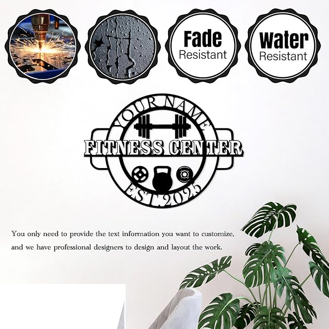 • 🏋️‍♂️💪🔥Personalized Perfection :Customize your gym space with our Metal Gym Name Sign! Add your name, gym's name, or an inspiring quote to make your sports room truly unique. It's the perfect way to showcase your dedication and personal style.