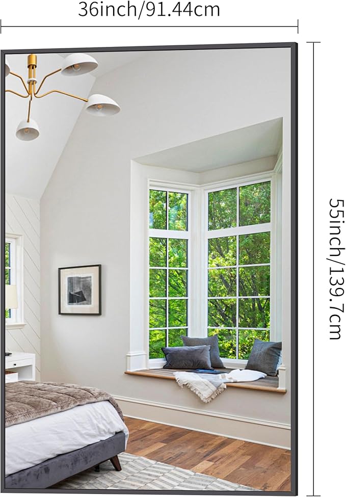 • RECTANGLE DESIGN :The 55x36 inch Large size mirror rectangle design and measures 55" x 36"Increase the sense of room space and depth Its unique shape adds a touch of sophistication and upscale beauty to your home
