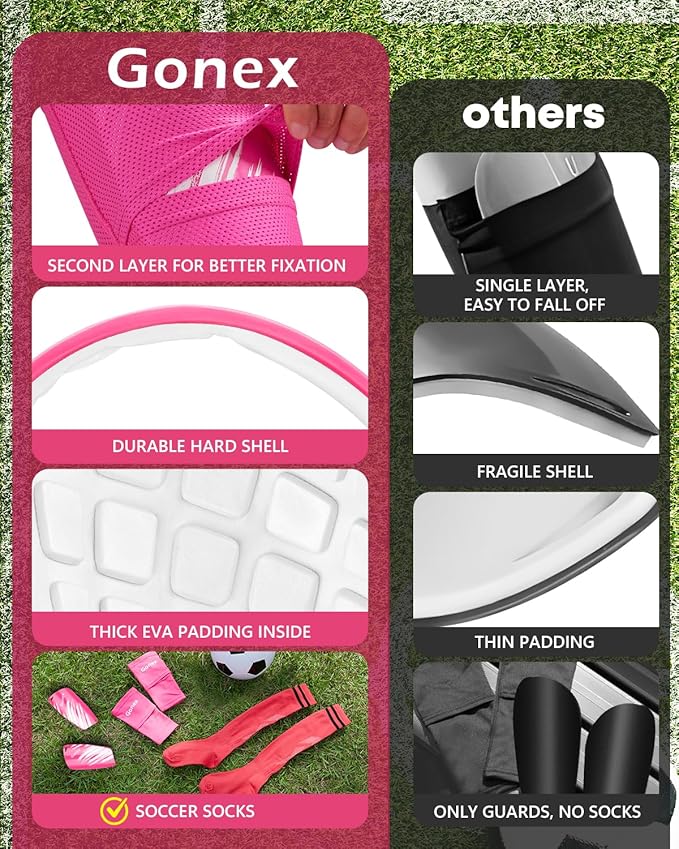Gonex Soccer Shin Guards for Kids Adult, Youth Boys Girls Shin Guards Slip in Soccer Shin Pad Sleeves Canilleras for Football Games, EVA Cushion Protection Reduce Shocks & Injuries
