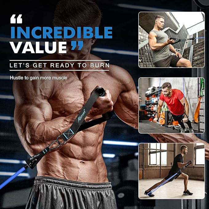 HPYGN Resistance Bands, Exercise Bands with Handles, Fitness Bands, Workout Bands with Door Anchor and Ankle Straps, for Heavy Resistance Training, Physical Therapy, Shape Body, Yoga, Home Workout Set