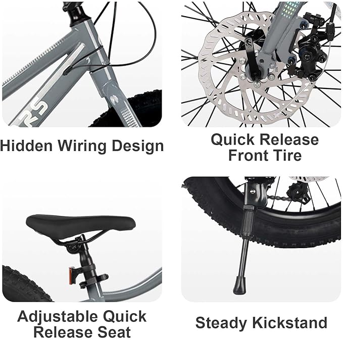 • 【Wider Tires】 20 x 2.8 inch knobby mountain fat tires provide excellent stopping power and tons of traction in sand and snow. This kids bike with soft seat offers more comfort in riding. Kickstand is included.