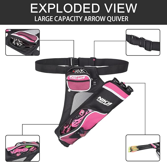 • ✔ Multi pocket design: Archery quivers has small and large pockets, making it convenient for you to place different arrows and other archery accessories, making it easy to use.