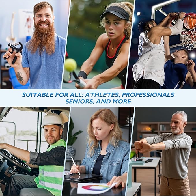 • 𝗩𝗲𝗿𝘀𝗮𝘁𝗶𝗹𝗲 𝗳𝗼𝗿 𝗩𝗮𝗿𝗶𝗼𝘂𝘀 𝗔𝗰𝘁𝗶𝘃𝗶𝘁𝗶𝗲𝘀 — Suitable for a wide range of activities including strength training, rehabilitation, sports, and stress relief. Perfect for musicians, office workers, athletes, and seniors who need to maintain hand strength and dexterity.