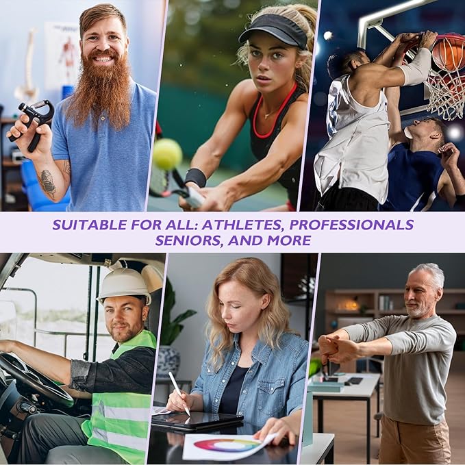 • 𝗩𝗲𝗿𝘀𝗮𝘁𝗶𝗹𝗲 𝗳𝗼𝗿 𝗩𝗮𝗿𝗶𝗼𝘂𝘀 𝗔𝗰𝘁𝗶𝘃𝗶𝘁𝗶𝗲𝘀 — Suitable for a wide range of activities including strength training, rehabilitation, sports, and stress relief. Perfect for musicians, office workers, athletes, and seniors who need to maintain hand strength and dexterity.