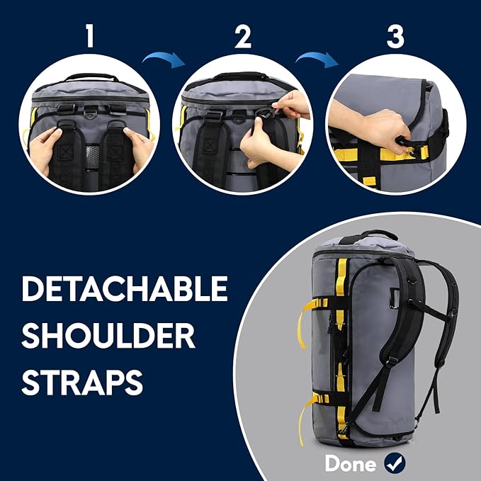 • 3-IN-1 CONVERTIBLE DUFFLE BACKPACK: The Haimont duffle bag quickly converts to a travel duffle backpack that comes with removable shoulder straps, an adjustable chest strap. The exterior of the bag is equipped with 4 side soft carry handles which offers a variety of carrying options. It is easy to convert and reduce the burden of traveling