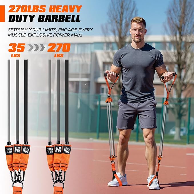 • 【270LBS Heavy Resistance】Our Pilates training set features 6 exercise bands – 2x35lb, 2x45lb, and 2x55lb tubes, offering up to 270lb resistance. Made of natural latex, it has high elasticity and tear resistance, suitable for intense daily exercise. Whether you're a beginner or advanced user, it adapts to your strength level.