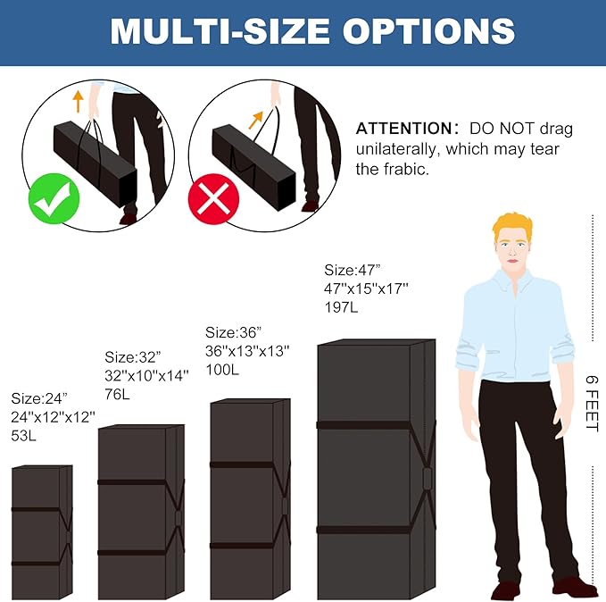 • Dimensions When Full: 32 inches x 10 inches x 14 inches (L*W*H) with extra large capacity, travel bag with roomy interior for storing items. Ideal for camping, hunting and sport travel and even fits for umbrella style strollers