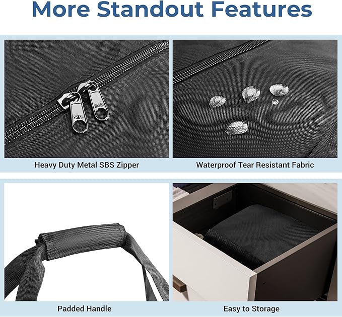 • Made of Sturdy, water-resistant 600 denier fabric material with premium heavy duty metal SBS 2-way lockable zippers(Not Including Locks). The padded shoulder strap for total comfort, the sturdy polyester body makes this duffle bag ideal for long-term use