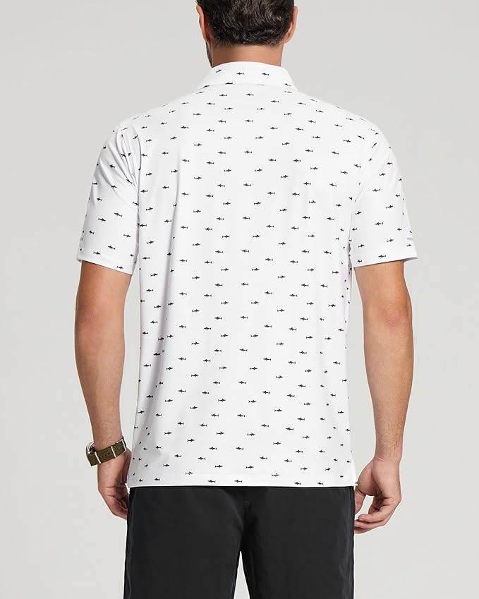 • Style Feature: This golf polo for men use allover print stretch fabric with easy care and keep good shape, well-made stitching.