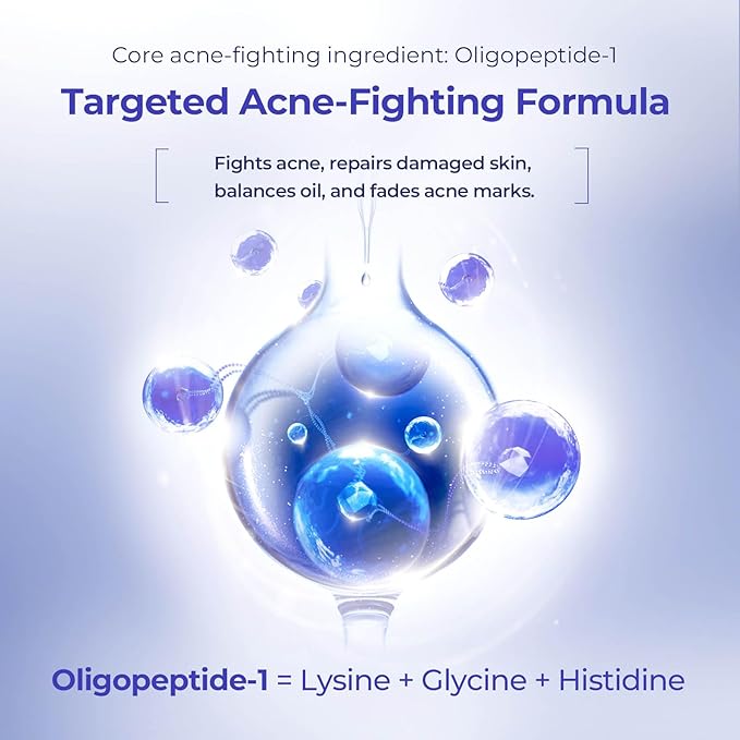 • Precision Acne Repair Formula: Key acne-fighting ingredient Oligopeptide-1, combined with Lysine, Glycine, and Histidine, enhances the skin's natural repair ability, effectively treats acne-prone skin, and improves elasticity and smoothness.