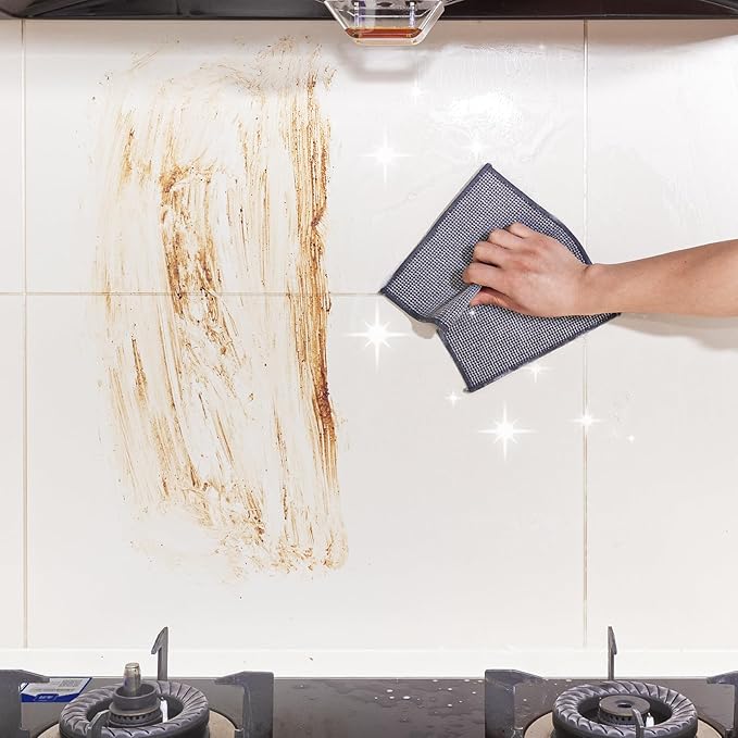 • Steel Wire Cleaning Cloth: Wire dishwashing rag features a triple-layer structure with a middle layer filled with absorbent Microfiber Cleaning Cloth This designand the size is perfect for handheld use without hurting hands It provides sufficient surface, easy to operate, leading to superior cleaning performance and effective coverage, making it the first choice for daily kitchen cleaning of dir