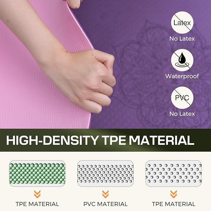 • 【TPE Exercise Mats】We selected TPE material carried out the technical improvements basic on traditional workout mats. Our TPE yoga mats are non-toxic, polymer material waterproof and sweat-proof, and easy to clean, better abrasion than PVC, EVA and NBR mats