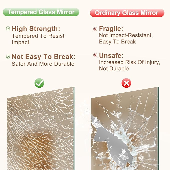 • 🥉[Long service life]-Tempered glass mirrors can use special coatings or wear-resistant materials during the manufacturing process to improve the wear resistance of the product and extend its service life.