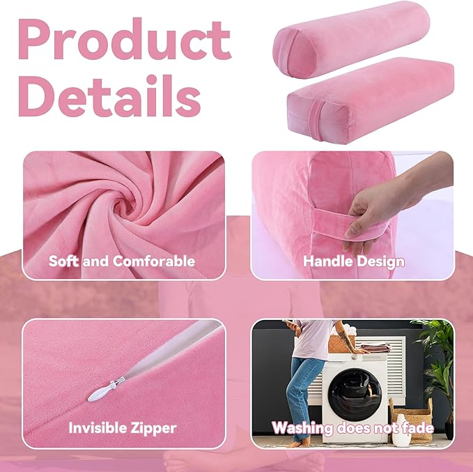 • Velvet cover: Our yoga bolster covers are made of velvet that is skin-friendly, soft and stretchy, and will help you relax quickly, whether you're doing yoga or using it for daily breaks. There is an invisible zipper that can be cleaned by hand or machine after removing the cover, and the handle on one side helps you carry it better.