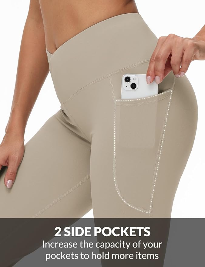• Deep Side Pockets: These long yoga pants feature 2 side pockets that allow you to conveniently store your essentials like keys, cards, or smartphone during your yoga sessions, keeping your hands free and your belongings secure.