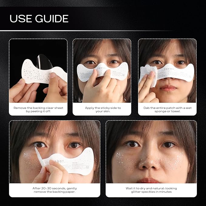 • EASY OF REMOVAL:These makeup glitter patches was easily able to get them off with makeup remover, baby oil or a cleansing oil. rubbing alcohol also works great to get the freckles off, and without leaving any residue.